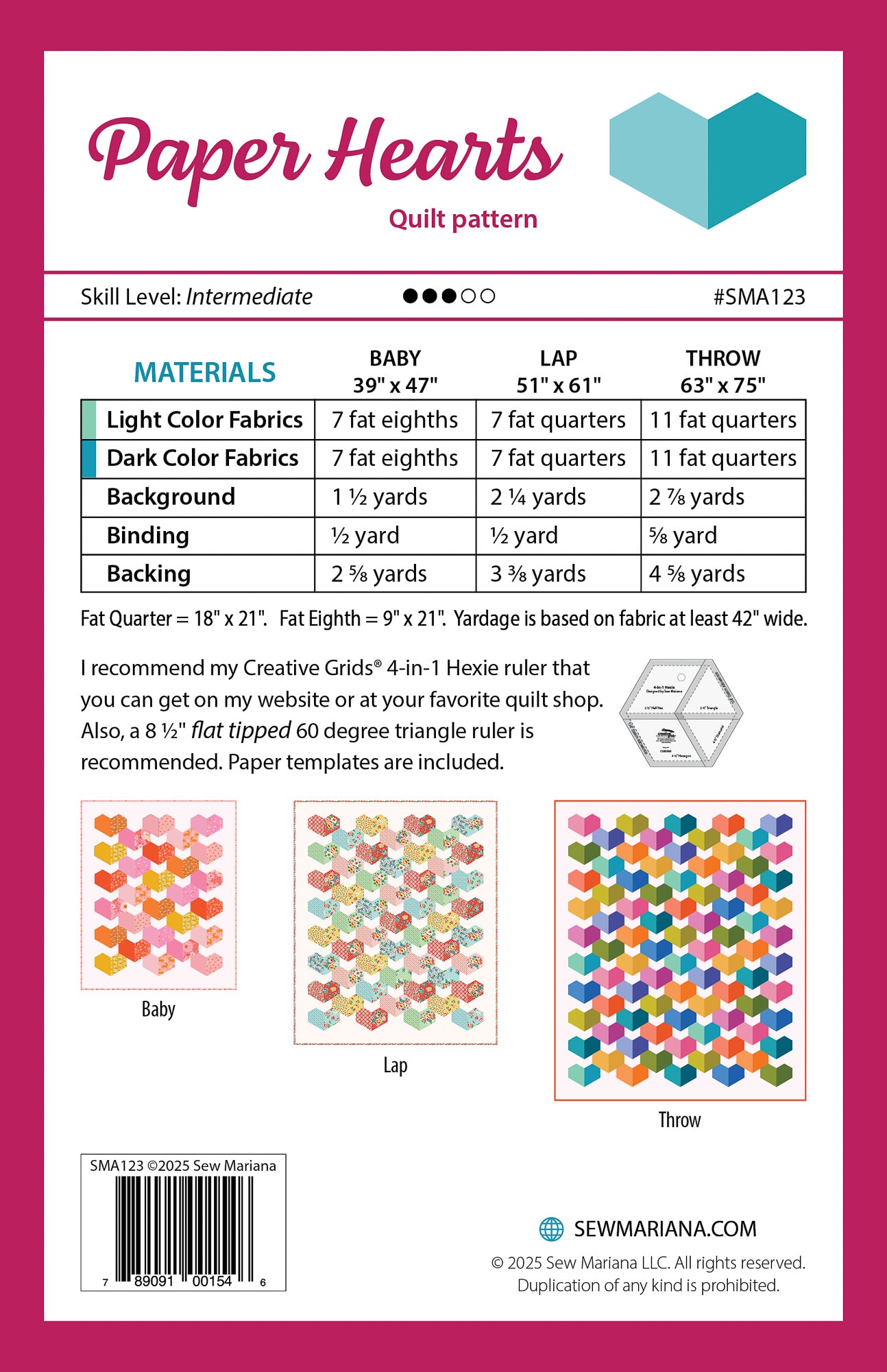 Skill Level: Intermediate. Quilter knows how to traditionally piece 60-degree triangles and hexagons.